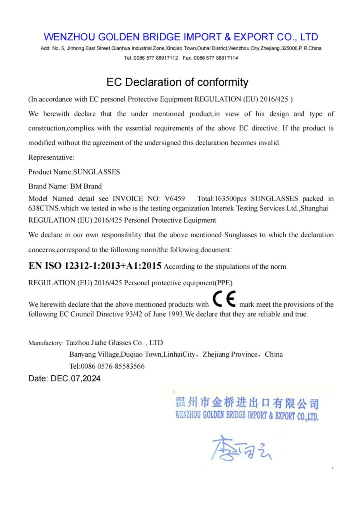 EU-Konformitätserklärung für die Überzieh-Sonnenbrille